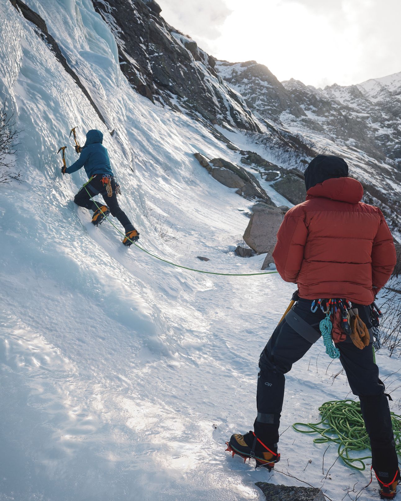 That’s me in the orange coat. Look, I do wear boots! This is low on the Pamola ice cliffs, below Pamola peak on Mt. Katahdin.